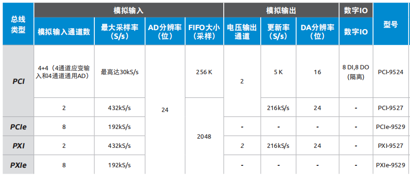 PCI-9527 | 雙通道24位 432 KS/s高分辨率動(dòng)態(tài)信號(hào)采集和信號(hào)發(fā)生器 |